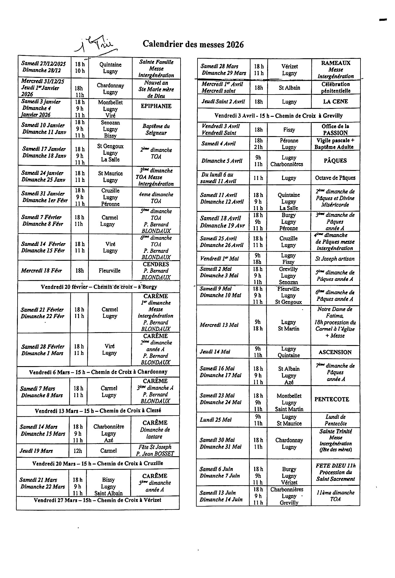 Les messes dominicales peuvent être suivies en direct sur FaceBook en cliquant sur ce lien https://www.facebook.com/paroisse.lugny.5