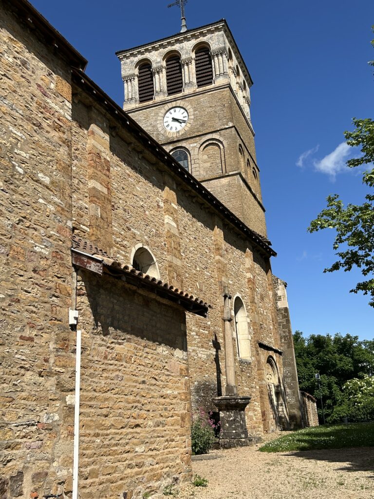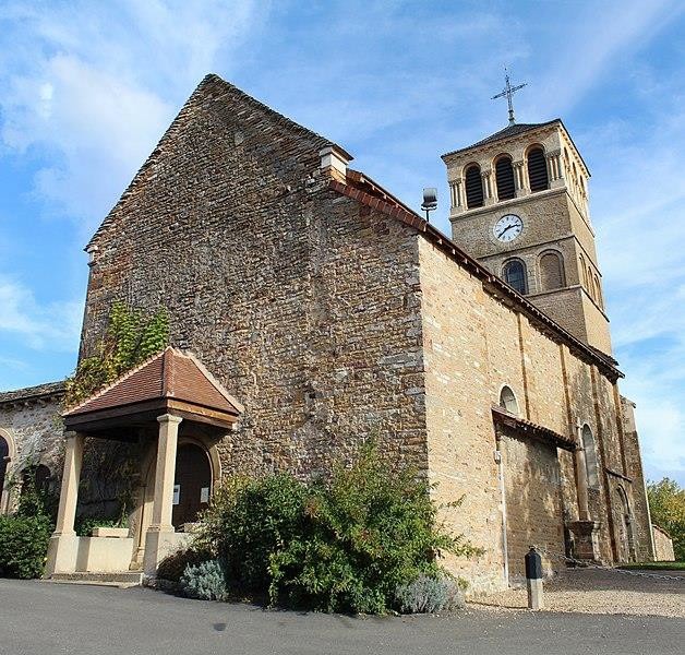 C’est sans doute aux moines clunisiens que l’on doit la construction, ou plutôt la reconstruction de l’église au XIIe siècle. On peut peut-être voir dans l’appareil de la façade, en opus spicatum par endroit, un indice de plus grande ancienneté de cette partie là de l’édifice (Xe-XIe s.). La nef unique plafonnée est prolongée par une travée couverte d’une coupole sur trompe, puis par une abside courte comportant une galerie d’arcatures reposant sur des colonnettes à chapiteaux sculptés. Le dernier étage du clocher a été reconstruit à l’époque moderne. Péronne était au XIIe siècle une obédience (ou doyenné) de Cluny, comme Bézornay, Jalogny ou Malay. Il s’agit d’un prieuré à la tête d’un réseau de biens temporels, des centres d’exploitation en fait, parfois aussi d’une paroisse – et c’est le cas à Péronne. Jusqu’au milieu du XIIe siècle le terme utilisé pour désigner ces maisons au coeur du système religieux, institutionnel et seigneurial clunisien est obedientia (obédience), peu à peu remplacé par decania (doyenné).