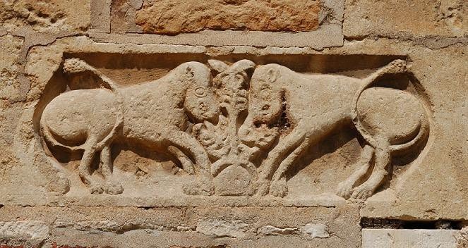 On notera la présence de deux linteaux très intéressants aux portails sud de l’église. L’un est orné d’un coq et l’autre de deux quadrupèdes affrontés autour de ce qui est sans doute l’Arbre de vie. Il s’agit d’un remploi d’éléments sculptés probablement au XIe siècle, dans le deuxième cas au moins