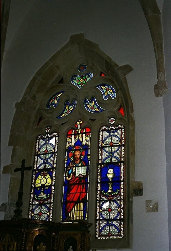 chœur surélevé de deux marches a, lui, conservé son couvrement d’origine en croisée d’ogives dont les retombées sont ornées de culs-de-lampe sculptés en forme d’animaux.